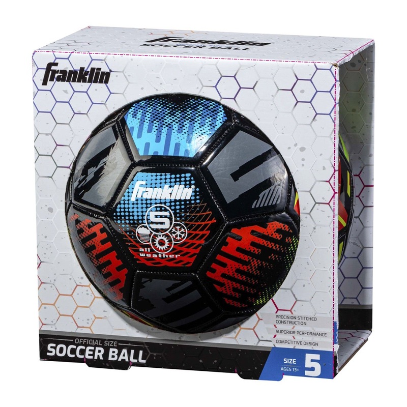 The Franklin Sports Mystic Series Size 5 soccer ball features a high-gloss sponge PVC cover created to provide excellent abrasion resistance, while the Shok-Sorb cushion system in this Franklin soccer ball provides a soft cover. This official-sized soccer