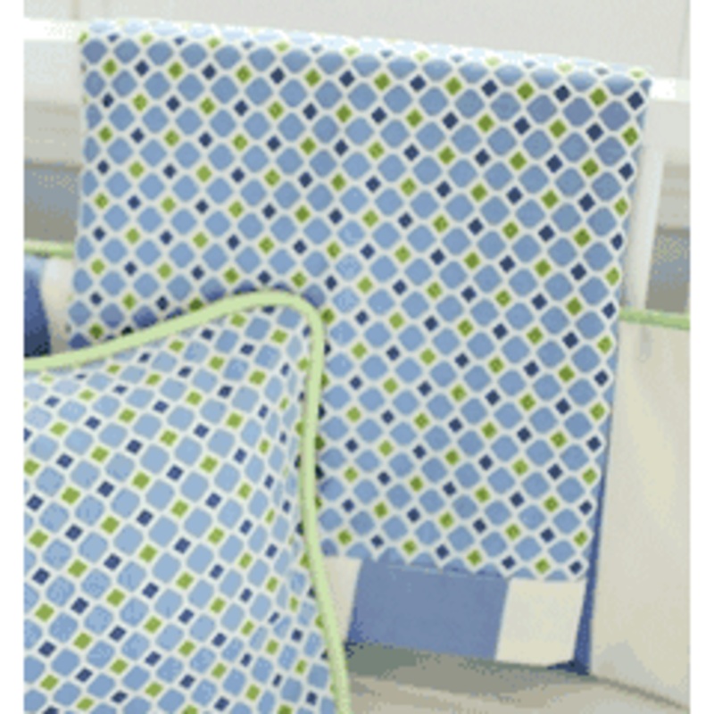 Blues & bright greens create a colorful nursery with our Boardwalk Collection! Our blue and green baby blanket makes a statement with big stripes & fun diamond pattern. The blanket is made of a Emerald City fabric with Cabana Stripe in Blue Harbor flange r