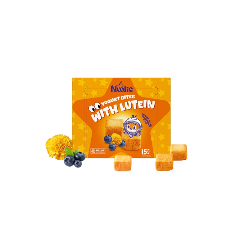 Noolie Yogurt Bites with Lutein, Kids Eye support and probiotics>>A bite a day helps keep the glasses away.>> Freeze dried with yogurt for tastiness >> 6mg of lutein & 0.6mg of zeaxanthine per piece, one piece fulfills daily needs >> Added Probiotics with