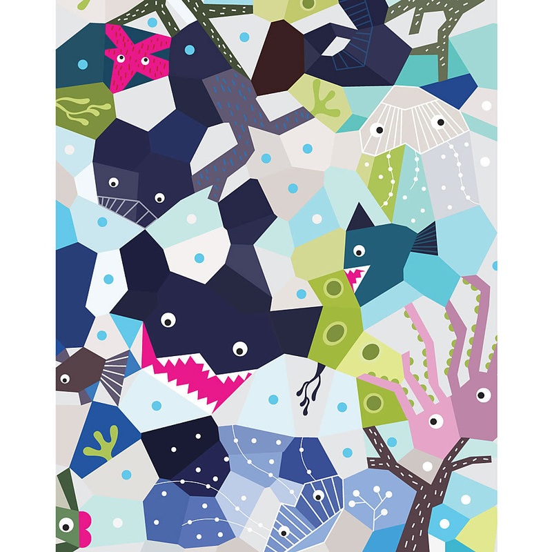 Inspired by cubism and exclusively designed by Wee Gallery for Nursery Works, the Oceanography Cubist Art Print brings a swimmingly stellar scene of the oceanic world into the nursery. As colors and shapes meet, this print lets your little one dive into th
