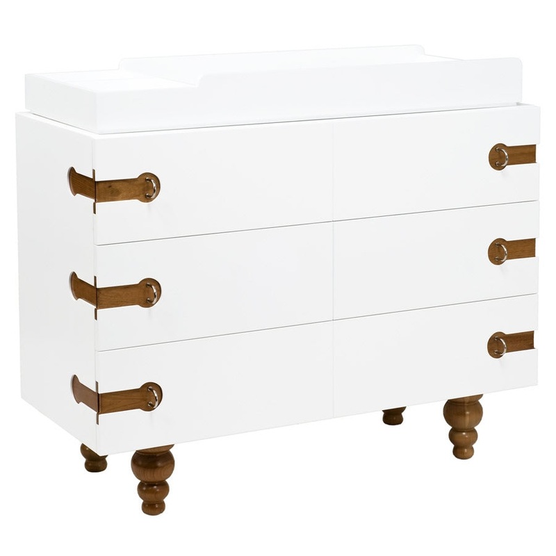 With its spacious three drawers, turned spindle legs and decorative wood accents, the Canterbury Changer is an uber-stylish, yet super-functional changer choice for your modern nursery. This piece will have a life long past baby when you remove the changing tray. Available in Snow lacquer and your choice of dark or light wood accents.