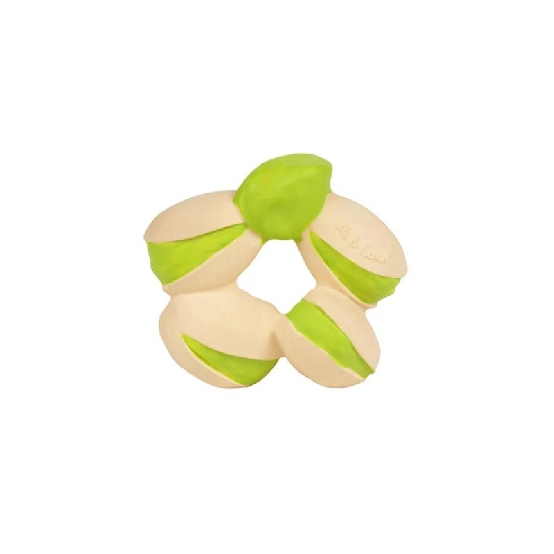 Patricio the Pistachio is a teether, bath toy & sensory play toy for babies. Stimulate babies' senses and help them soothe teething gums with this pistachio-shaped natural toy! Its design with a hole in the middle makes it easy-to-hang from a strap & take