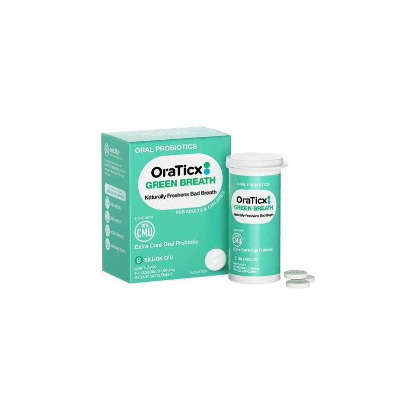 Unlock the power of a fresh and confident smile with this game-changing solution, OraTicx Green Breath! OraTicx contains a clinically-backed blend of prebiotics and probiotics suited for optimal oral health. With daily use, you can strengthen your natural microbiome and reduce bad breath.