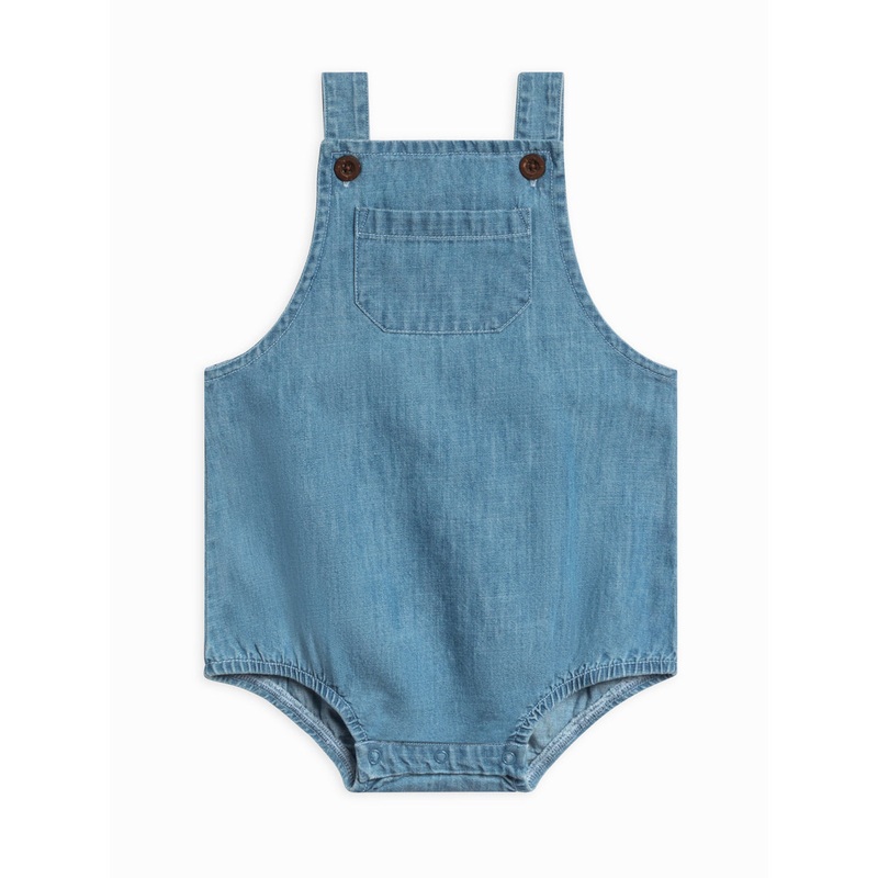 A must-have for your babys wardrobe - The Noe Chambray Bubble Overall is the perfect mix of playful and practical! With its sweet bubble shape and wooden button details, its a delightful piece for all your little ones adventures. The front patch pocket add