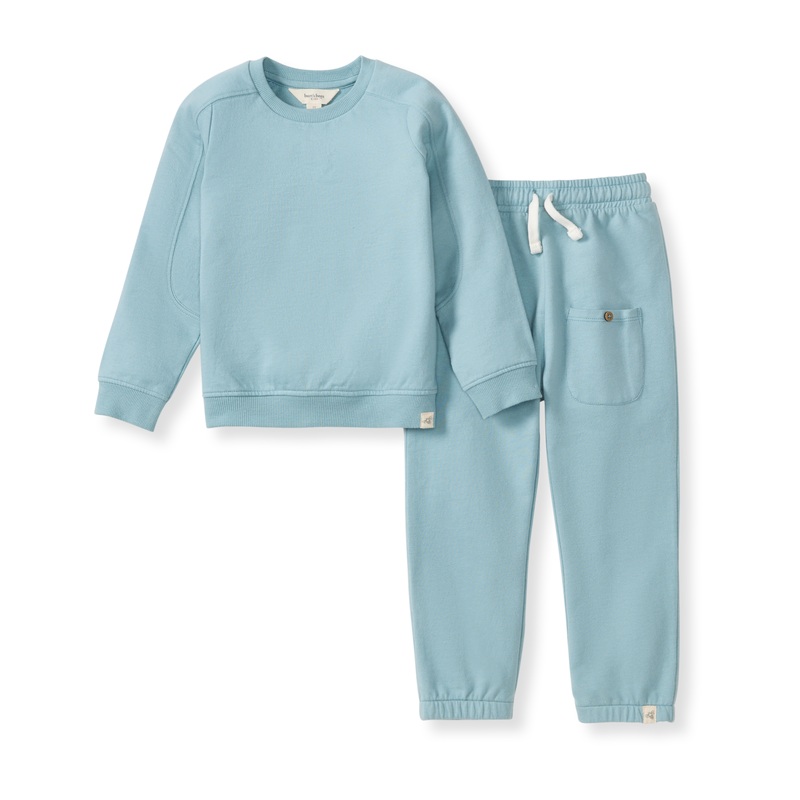 All day comfort in this monochrome sweatshirt set!Sweatshirt and jogger set100% organic cottonFrench terry sweatshirt and joggersCool seam top stitching detail on sleevesElastic at leg openingsFunctional pocket and functional drawstring on pantMade in Indi