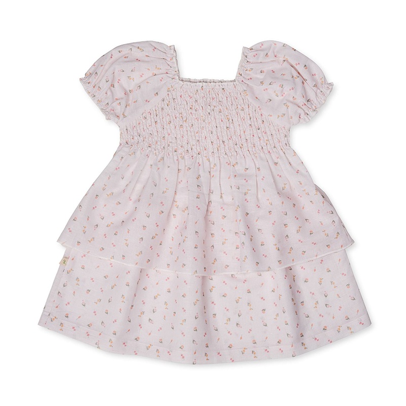 Styslish Dress with inner lining and soft elasticated smocking in super soft linen cotton. Double layer that gives a bouncing look to your little one. No button, no fuss pull down dress is always loved by your child.Machine Washable. Easy care for your convenience.