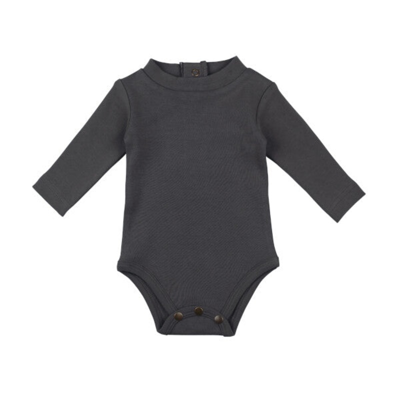 Organic Mock-Neck Long Sleeve Bodysuit – Charcoal 0-3m