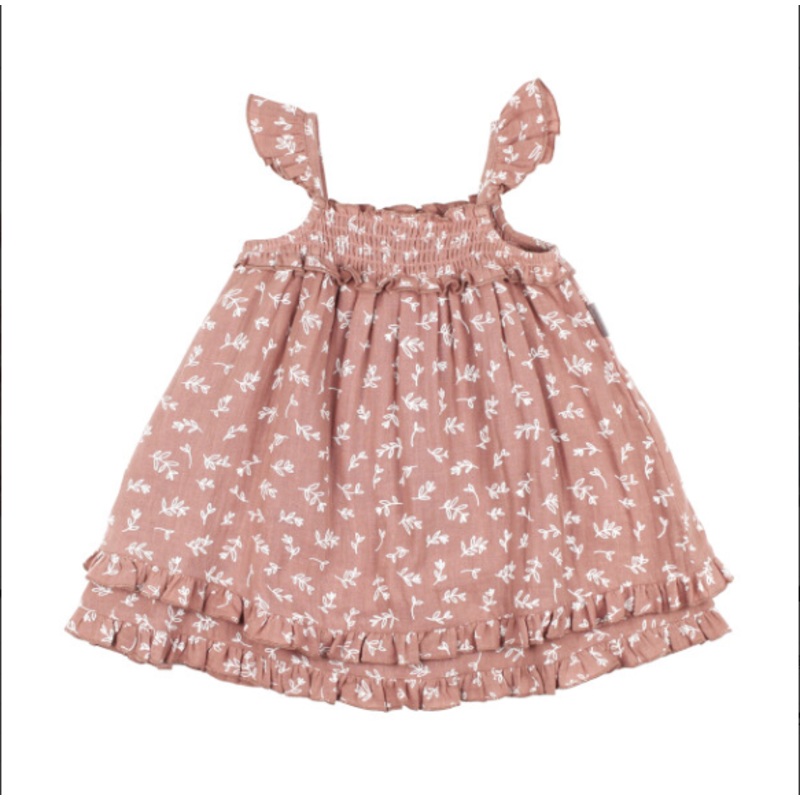 GOTS certified 100% organic cottonshoulder straps with small flutter sleeve detailing, and sweet smocking across the chestknee-length, double-layered skirt portion with ruffle detailing at hem...for the perfect twirllightweight and soft; perfect for holida