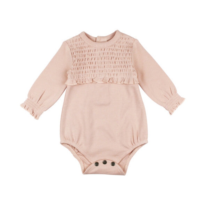 GOTS certified 100% organic cotton3-snap back panel for easy dressing, with additional snaps at crotch for easy diaper changessmocked and ruffle detail at chest for added cutenesschrome/lead/nickel-free antique brass snaps at crotch areatagless for added c