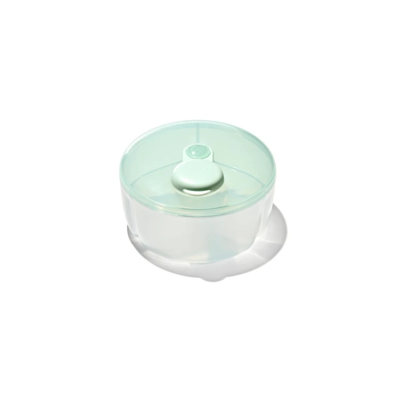 For feedings on the go, pack the compact OXO Tot Formula Dispenser. The three compartments each hold enough powdered formula for a 9-ounce bottle. Simply turn the lid until it clicks into the desired compartment and lift the cap. The cap swivels and stays out of the way for one-handed pouring. It has rounded corners for easy pouring and cleaning, while its soft, compact shape makes it easy to pack in diaper bags for feedings anywhere. Top-rack dishwasher safe.