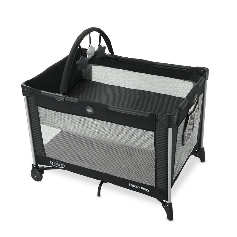 Keep your little one happy and comfortable no matter where you go with the Graco Pack 'n Play On the Go Playard. A removable full-size bassinet folds with the playard for a quick setup and fewer parts to carry. Folding feet and wheels allow for a compact f