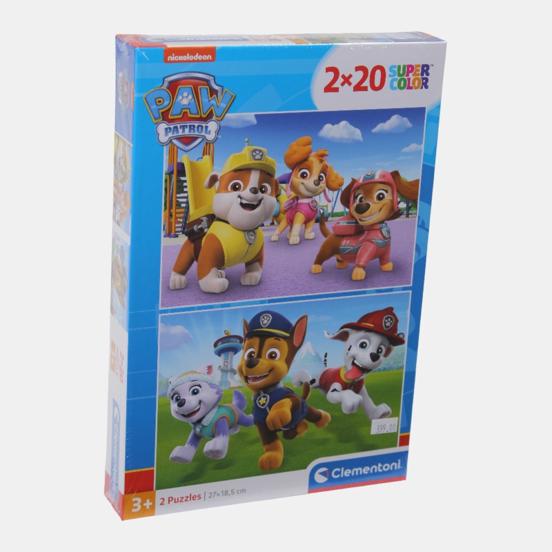 This Paw Patrol Jigsaw Puzzle set includes two puzzles, each with 20 pieces, designed for young children to enjoy and build essential skills.