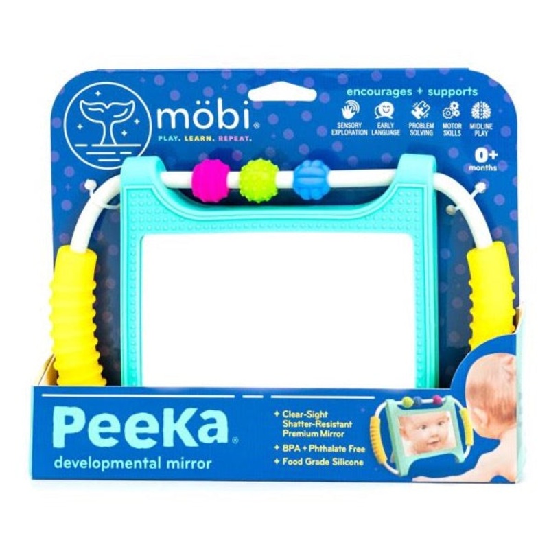 Peeka was inspired by our two little ones – Kate, who loves holding a mirror while we change her diaper and Noah, who as a preemie required as much developmental play and support as possible. When we started developing Peeka, we knew we wanted to make it as dynamic and multidimensional as possible – a toy that keeps a baby’s attention and is packed with developmental attributes. We teamed up with doctors and therapists to get Peeka just right!