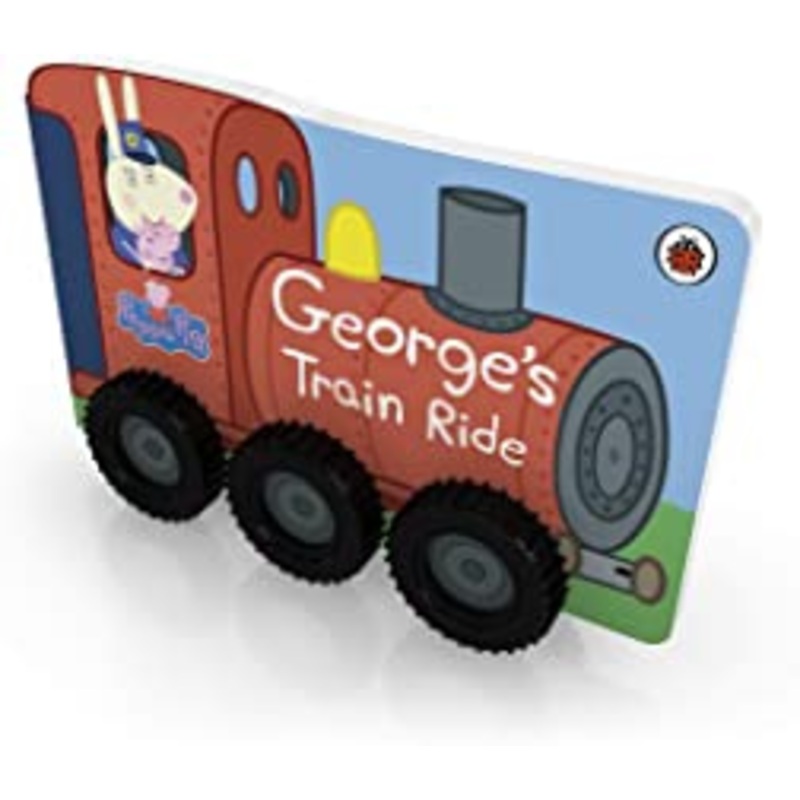 George is going on a long train journey with Peppa, Daddy Pig and Mummy Pig. Board the train and follow George on his exciting train ride in this super fun novelty book that's shaped like train!This train-shaped board storybook has 6 real wheels!