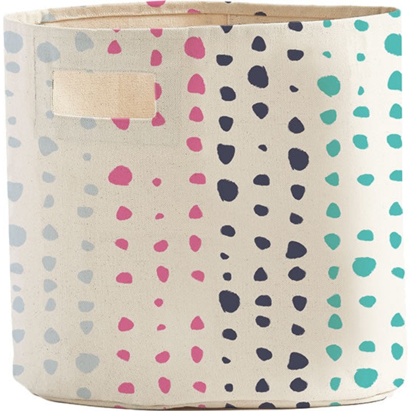 Tidy away books, trains and craft supplies. Great for your little ones treasures, or as a catch all for the family. The Petit Pehr Painted Dots Bins are 100% cotton canvas and 13D" x 12H".