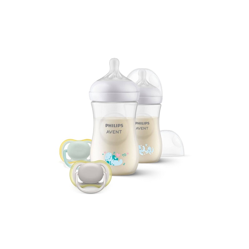 2 Natural Response baby bottles of 260 ml.2 Ultra Air pacifiers.The wide, soft and flexible teat is designed to mimic the shape and feel of a mother's breast, helping baby to feed comfortably.The anti-colic valve is designed to keep air out of your baby's