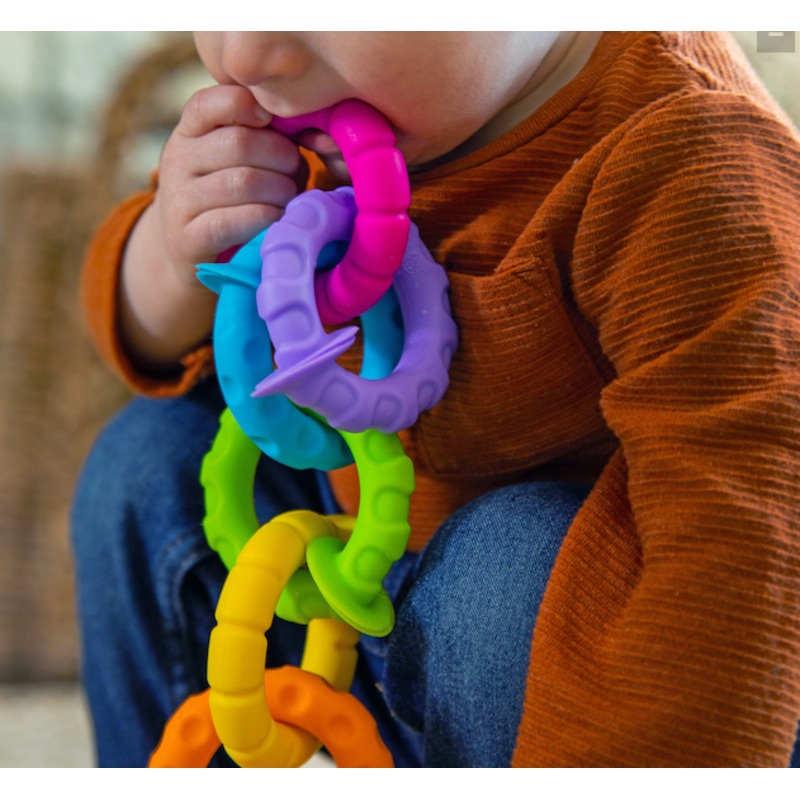 Connect them to anything and let your little one explore!Each of these six silicone rings features fun, vivid textures and suction cup connectors that are quick to fascinate the senses and inspire hours of exploration.Loop them together or pull them apart