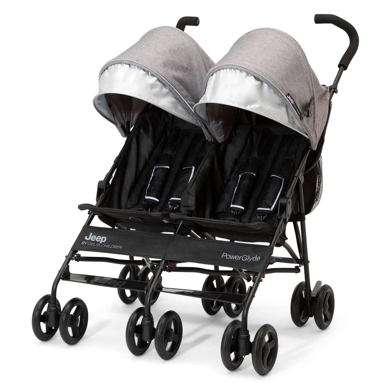Looking for a wheel-y great ride for you and your growing family? Look no further than the Jeep PowerGlyde Side-by-Side Double Stroller by Delta Children! Designed to deliver the best ride ever, the Jeep PowerGlyde Side-by-Side Double Stroller offers the m