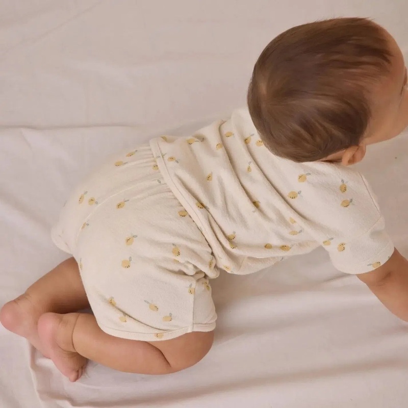 This easy breezy set made from our fun spongey knit is perfect for warm weather days.Featuring our lemons print on our ivory hue. This citrusy sweet print is perfect for sunny days.Care: Machine wash cold. Tumble dry low.Made of 100% organic cotton.