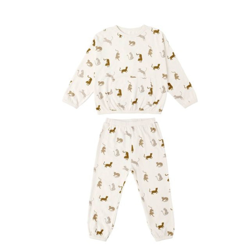 This Relaxed Set, is a cozy staple for cooler days. Shoulder snaps included on sizes 03M - 1218M for easy changes.Featuring our 'tigers' print on our 'natural' hue.Care: Machine wash cold. Tumble dry low.Made of 100% cotton.