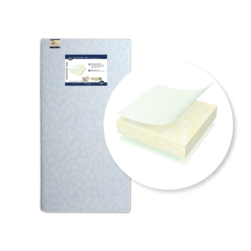 Serta's Nightstar Skies Crib & Toddler Mattress is designed with all the features you'd hope to find in your child's first mattress: a waterproof and stain resistant vinyl cover, cloth binding for long-lasting durability, plus a lightweight construction th