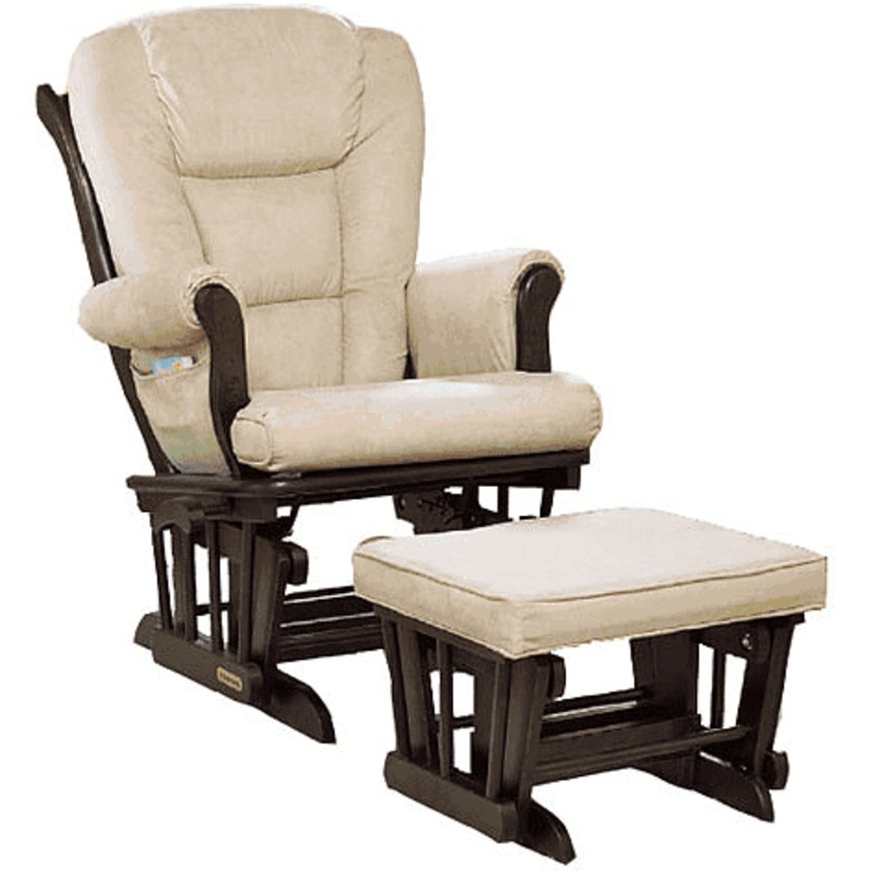 Glider Features:Plush ?Thick? Wrap around cushioning5 position Multi-Lock systemSteel ball bearing glides provide smooth worry free glidingSolid Harwood Construction for durabilitySoft edges, toxic free finishEasy to assemble. One Year limited warrantyOtto