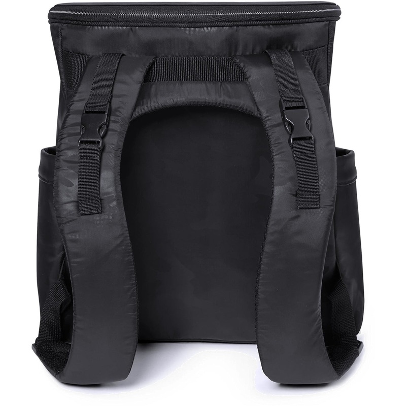 One part diaper backpack, one part supercool carryall, our Paxwell Easy-Access Diaper Backpack rocks a sporty-meets-techy look both mom and dad will love. The lightweight, ergonomic design features a roomy main compartment with a wide, curved opening for easy access. A tonal camo print and comfy padded straps lined with breathable airmesh add to the on-trend athleisure vibe. Two insulated side bottle pockets, an exterior zip pocket (great for smartphones) and a see-through mesh interior pocket make this a peak performance must-have for parents on the move.
