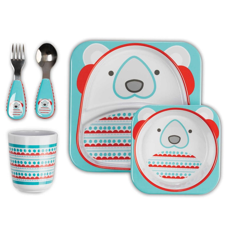 After a busy day of building snowmen, your little one will be excited to enjoy a warm snack with their new arctic Zoo friends. These adorable cold-weather creatures make the perfect mealtime companions. The dishwasher safe plate, bowl and tumbler are all made of durable melamine, perfect for hot cocoa and pasta, and the fork and spoon feature stainless steel heads and soft side grips to make it easy for kiddos to hold.