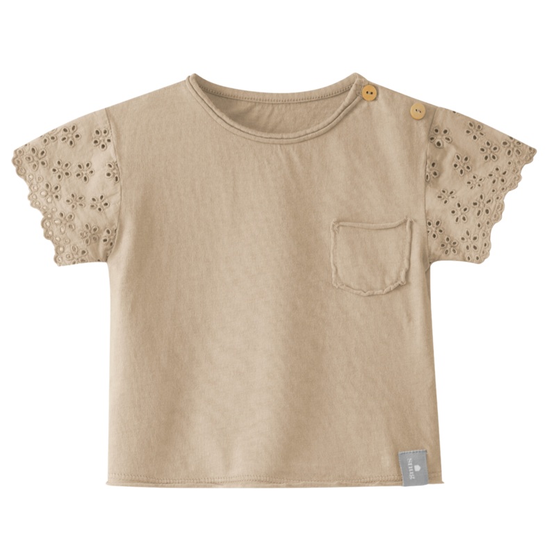 75% ORGANIC COTTON, 25% RECYCLED COTTONEnglish embroidery on sleevesFastens with wooden buttons on the shoulderGOTS dyeing processes uses approximately 60% less waterIn addition to only choosing materials that ensure maximum comfort for the baby, Snug also