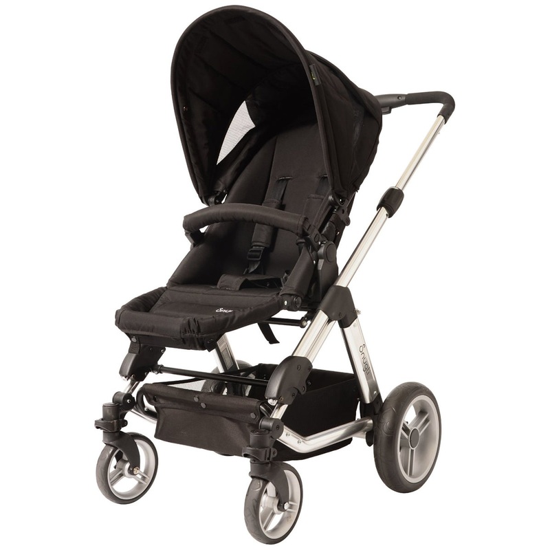 Step out in style with the NEW Snugli Stroller! With its sleek, durably constructed aluminum frame and available Style Set accents, the Snugli stroller offers parents on the go a way to express their style, while experiencing optimum comfort and functionality. The Snugli stroller offers a hassle-free ride with all wheel suspension and pivoting front wheels to ensure a smooth ride and easy maneuverability. The Snugli stroller provides premium comfort for parent and child, featuring a fully adjustable child seat, reversible seat configuration and multiple-height parent handle. Other great features include an oversized storage basket and a durable, protective canopy. The stroller frame is infant car seat compatible when used with an appropriate adapter. Adapter included with purchase of our new Snugli Infant Car Seat.