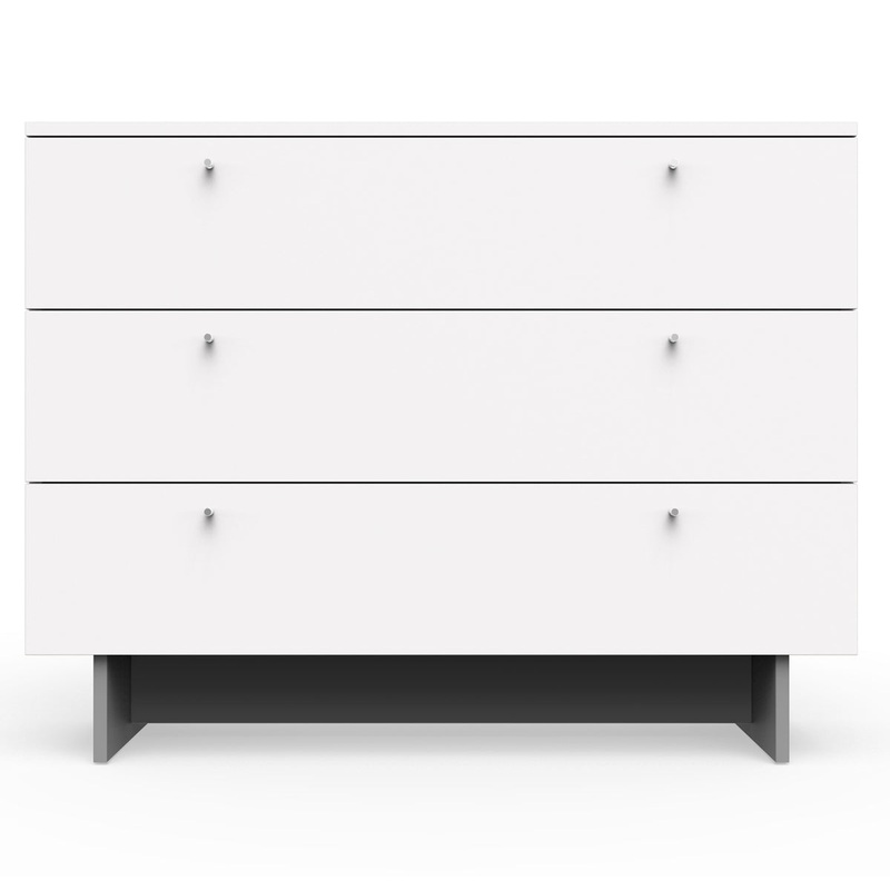 The Roh collection by Spot On Square is every modernists dream. The generously sized, walnut on white or all white dresser will have parents considering a set for their own bedroom as well. A removable changing tray is available. This premium collection by