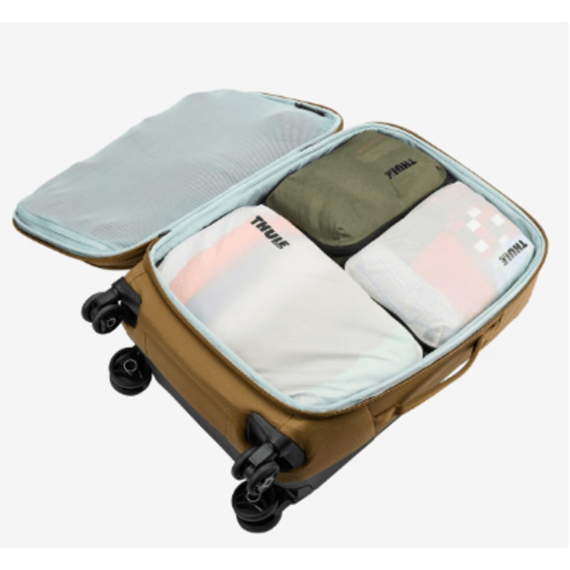 Pack smarter and stay organized with a semitransparent packing cube that expands and compresses to maximize packing space.