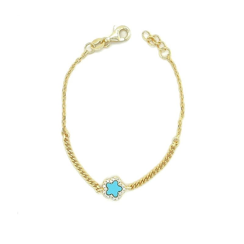 This baby bracelet is so pretty and is the perfect piece to start your childs Topaz and Ruby Collection. Made from 14k Gold Plated Over Sterling Silver with Cz.Length 5.5+ .5 extension