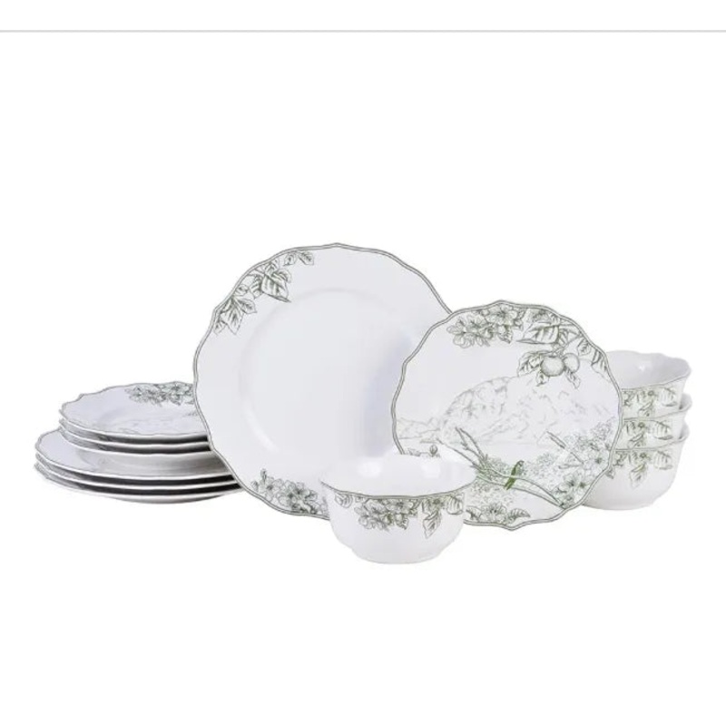 Traditional Green Porcelain Tableware Set – 12 Pieces